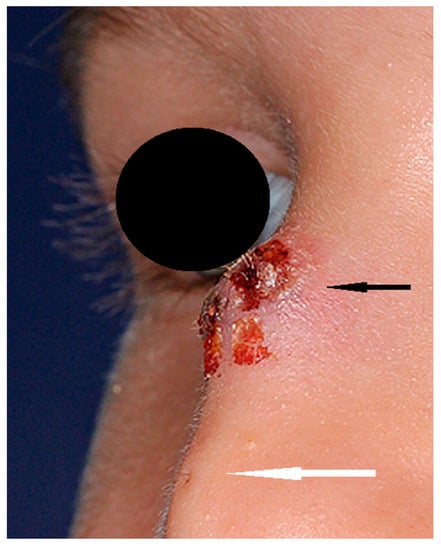 - Kotowski, M.; Szydlowski, J. Congenital midline upper lip sinuses with intracranial extension—A variant of nasal dermoid? An embryology-based concept. Int. J. Pediatr. Otorhinolaryngol. 2023, 164, 111394. [Google Scholar] [CrossRef]