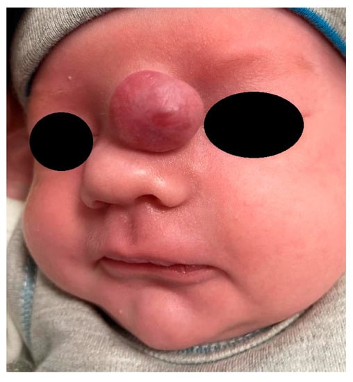 - Huisman, T.A.; Schneider, J.F.; Kellenberger, C.J.; Martin-Fiori, E.; Willi, U.V.; Holzmann, D. Developmental nasal midline masses in children: Neuroradiological evaluation. Eur. Radiol. 2004, 14, 243–249. [Google Scholar] [CrossRef][Green Version]