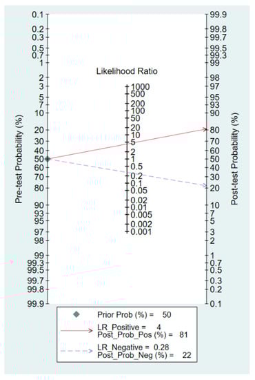 The diagnostic efficacy of the ICV collapsibility index was assessed by computing the area under the curve (AUC) from a summary receiver operating characteristic (sROC) curve. To estimate post-test probability, Fagan’s nomogram with likelihood ratios (LRs) of the test results was used. A Deek’s funnel plot was used to explore the presence of publication bias. Statistical significance was determined at a threshold of 0.05, and all statistical analyses were conducted using the MIDAS command in Stata 15 (StataCorp LLC., College Station, TX, USA).