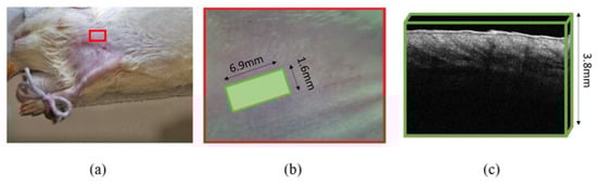 Figure 2 shows some details of the implementation of the OCT study in the rat tissues. The C-scans were measured in a 3D matrix at sizes of 300 × 695 × 1253 pixels.
