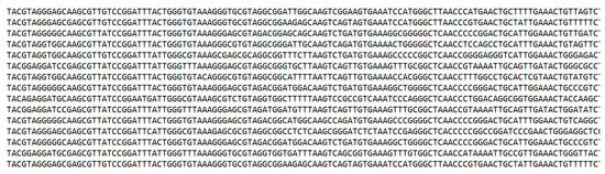 Figure 4, a fastq file contains not only raw sequence but also extra information about the read. This study only uses the raw sequences, therefore the extra information of each sequence in each file was removed and the file converted to a standard text file. The final state of the raw sequence file can be seen in