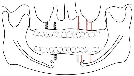 - Guerrero, M.E.; Noriega, J.; Jacobs, R. Preoperative implant planning considering alveolar bone grafting needs and complication prediction using panoramic versus CBCT images. Imaging Sci. Dent. 2014, 44, 213. [Google Scholar] [CrossRef]