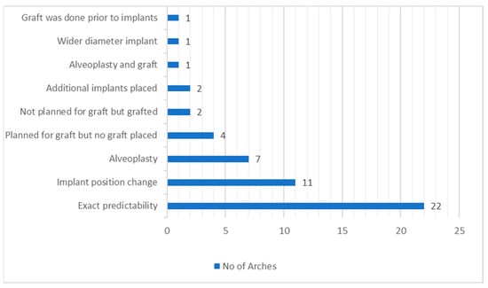 - One arch had grafting carried out prior to implant placement surgery.