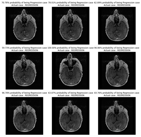 “Regression” class: Precision = 1.00, Recall = 0.77, F1-score = 0.87, Accuracy = 0.83. The FT_model showed high precision for the “regression” class and high recall for the “progression” class. However, there may be some misclassification in these cases, and the F1-scores indicate a tradeoff between precision and recall.