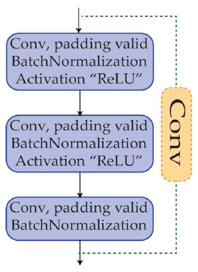 Another sort of building block that is often utilized in CNNs is the convolutional block [48]. It is made up of a series of convolutional layers, batch normalization, activation layers, and, if desired, a max pooling layer. A convolutional block is implemented to extract features from the input data. The convolutional block is comprised of a number of convolutional layers, each of which is responsible for performing convolutional operations on the input data in order to identify significant patterns and characteristics. The convolutional block contributes to the neural network’s depth, allowing it to learn more complicated characteristics from the input data. The network may learn to detect more and more abstract information by stacking numerous convolutional blocks, which is necessary for effective picture identification, as shown in Figure 5.