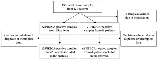 - Arsenic, R.; Lehmann, A.; Budczies, J.; Koch, I.; Prinzler, J.; Kleine-Tebbe, A.; Schewe, C.; Loibl, S.; Dietel, M.; Denkert, C. Analysis of PIK3CA Mutations in Breast Cancer Subtypes. Appl. Immunohistochem. Mol. Morphol. 2014, 22, 50–56. [Google Scholar] [CrossRef]