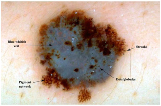 - Braun, K.K. Dermoscopedia R. Dermoscopic Structures. 2019. Available online: https://dermoscopedia.org/Dermoscopic_structures (accessed on 21 January 2019).