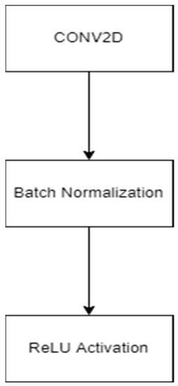 In this proposed work, we have replaced the encoder block of UNet with ResNet architecture to exploit the residual mapping. The proposed architecture of the network is shown in Figure 6. In this, BN denotes batch normalization, MP stands for maxpooling, and BN_ACT refers to batch normalization and ReLU activation. Moreover, the CONV_BLOCK represents the convolution layer, batch normalization, and activation layer, as shown in Figure 7.