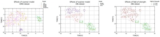 Table 4. Domain shift distance and domain classification accuracy for the ADNI1 (Model 1 = Allegra, Model 2 = Trio, Model 3 = Symphony+Avanto+Sonata) and AIBL (Model 1 = Avanto, Model 2 = TrioTim, Model 3 = Verio) datasets to show the effects of various scanner models.