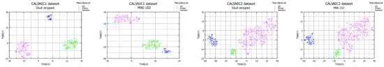 Uniform Manifold Approximation and Projection (UMAP) [11]: It is another nonlinear dimension reduction algorithm that focuses on retaining the local structure of the data. In order to map the high-dimensional data to a lower-dimensional space, UMAP creates a topological representation of the data while maintaining the neighbourhood relationships between the data points. UMAP is implemented with the Python umap package with default hyper-parameters (n_components = 2, n_neighbors= 15, min_dist= 0.1, metric = ‘euclidean’). This study’s visual findings are mostly similar for both t-SNE and UMAP. However, the data are more condensed in UMAP and tend to produce more clusters; hence, t-SNE is recommended as the first choice.