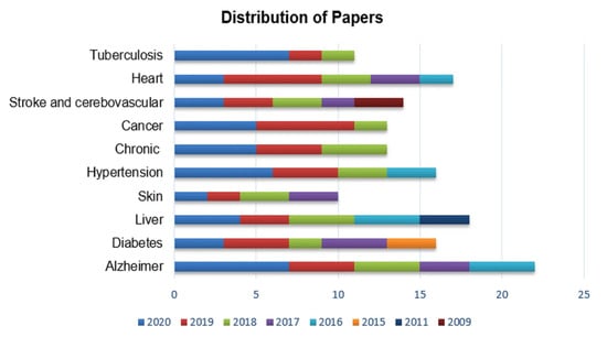 Distribution of published papers for disease diagnosis using artificial intelligence techniques [4]. Adapted from Kumar, Y., Koul, A., Singla, R. et al. Artificial intelligence in disease diagnosis: a systematic literature review, synthesizing framework, and future research agenda. J Ambient Intell Human Comput 14, 8459–8486 (2023).