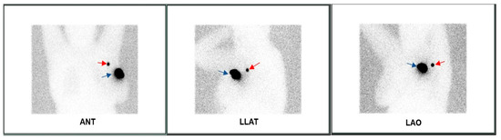 - Giammarile, F.; Alazraki, N.; Aarsvold, J.N.; Audisio, R.A.; Glass, E.; Grant, S.F.; Kunikowska, J.; Leidenius, M.; Moncayo, V.M.; Uren, R.F.; et al. The EANM and SNMMI Practice Guideline for Lymphoscintigraphy and Sentinel Node Localization in Breast Cancer. Eur. J. Nucl. Med. Mol. Imaging 2013, 40, 1932–1947. [Google Scholar] [CrossRef]