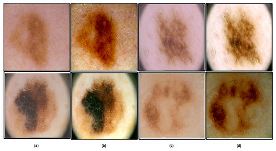 - Khan, M.Q.; Hussain, A.; Rehman, S.U.; Khan, U.; Maqsood, M.; Mehmood, K.; Khan, M.A. Classification of melanoma and nevus in digital images for diagnosis of skin cancer. IEEE Access 2019, 7, 90132–90144. [Google Scholar] [CrossRef]