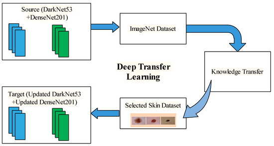 Transfer learning model for the learning of deep model for skin lesion classification.