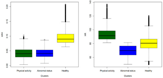 In contrast, in the abnormal status (i.e., potentially COVID-19), we notice a decrease in the SDNN while HR is at rest. Finally, HR and SDNN are at their expected values in the healthy cluster. In other words, there is no observed increase in the HR and a decrease in HRV (i.e., SDNN).