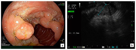 Endoscopic (a) and EUS (b) evaluation of ANLs.