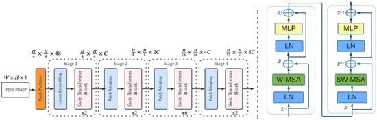 - Liu, Z.; Lin, Y.; Cao, Y.; Hu, H.; Wei, Y.; Zhang, Z.; Lin, S.; Guo, B. Swin Transformer: Hierarchical Vision Transformer Using Shifted Windows. In Proceedings of the 2021 IEEE/CVF International Conference on Computer Vision (ICCV), Montreal, QC, Canada, 10–17 October 2021; pp. 9992–10002. [Google Scholar] [CrossRef]
