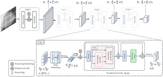 PVT uses a type of self-attention known as spatial-reduction attention (SRA), which is characterized by a spatial reduction in both keys and values, to obtain the quadratic complexity of the attention mechanism [60]. SRA gradually reduced the spatial dimensionality of the characteristics across the entire model. In addition, it applied positional embeddings to all transformer blocks, strengthening the idea of order. The PVT architecture is shown in Figure 5. There are four variants of PVT, PVT-tiny, PVT-small, PVT-medium, and PVT-large, but in our case, we utilized PVT-medium and PVT-large for improved performance.