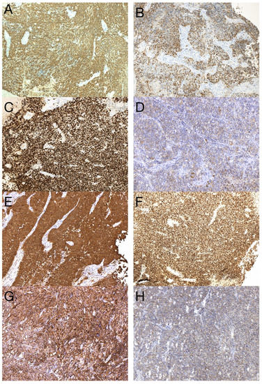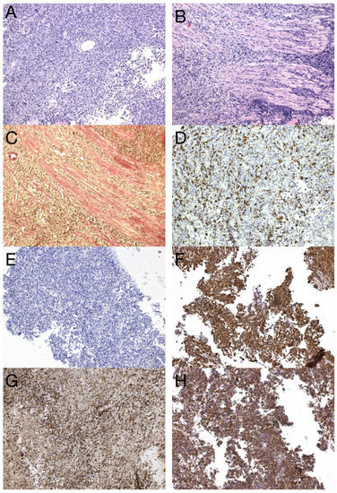 - Perry, A.; Miller, R.; Gujrati, M.; Scheithauer, B.; Zambrano, S.C.; Jost, S.; Raghavan, R.; Qian, J.; Cochran, E.; Huse, J.; et al. Malignant gliomas with primitive neuroectodermal tumor-like components: A clinicopathologic and genetic study of 53 cases. Brain Pathol. 2009, 19, 81–90. [Google Scholar] [CrossRef] [PubMed]