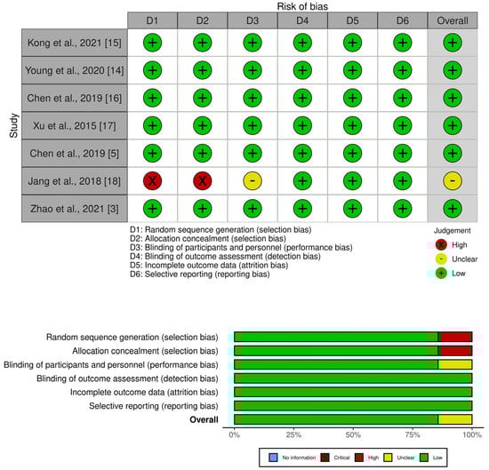 Summary of risk of bias in primary studies [3,5,14,15,16,17,18].