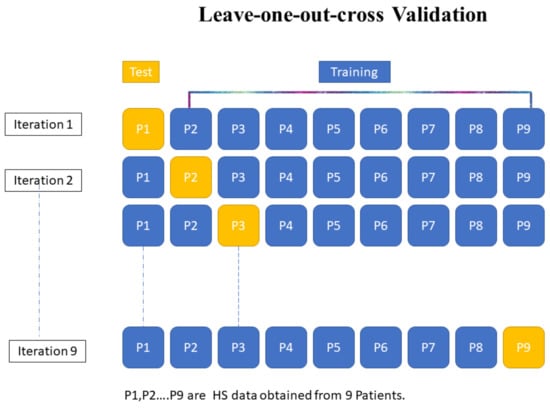 Systematic representation of the leave-one-patient-out cross-validation methodology based on the HS data of 9 patients.