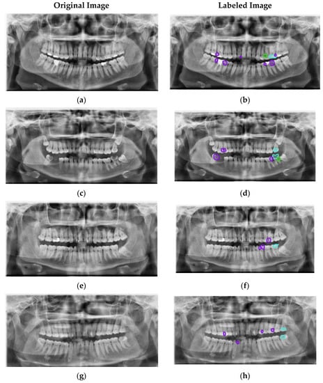 - Lee, S.; Kim, D.; Jeong, H.-G. Detecting 17 fine-grained dental anomalies from panoramic dental radiography using artificial intelligence. Sci. Rep. 2022, 12, 5172. [Google Scholar] [CrossRef]