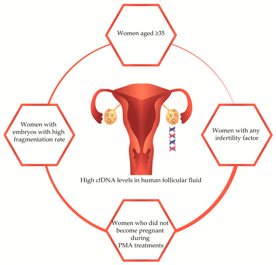 - Traver, S.; Scalici, E.; Mullet, T.; Molinari, N.; Vincens, C.; Anahory, T.; Hamamah, S. Cell-free DNA in Human Follicular Microenvironment: New Prognostic Biomarker to Predict in vitro Fertilization Outcomes. PLoS ONE. 2015, 10, e0136172. [Google Scholar] [CrossRef][Green Version]