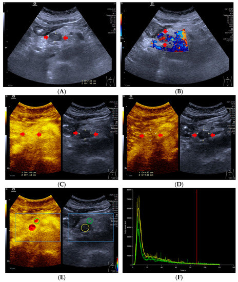 - Zhang, Q.; Wu, L.; Yang, D.; Qiu, Y.; Yu, L.; Dong, Y.; Wang, W.-P. Clinical application of dynamic contrast enhanced ultrasound in monitoring the treatment response of chemoradiotherapy of pancreatic ductal adenocarcinoma. Clin. Hemorheol. Microcirc. 2020, 75, 325–334. [Google Scholar] [CrossRef]