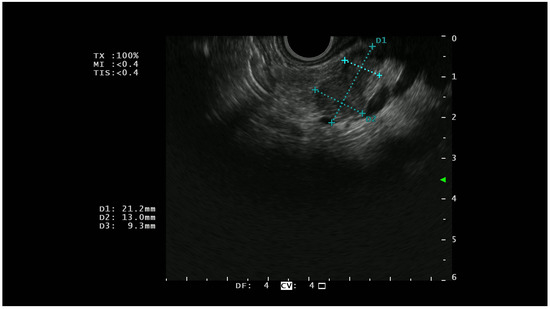 - Kato, T.; Tsukamoto, Y.; Naitoh, Y.; Hirooka, Y.; Furukawa, T.; Hayakawa, T. Ultrasonographic and endoscopic ultrasonographic angiography in pancreatic mass lesions. Acta Radiol. Stockh. Swed. 1995, 36, 381–387. [Google Scholar]