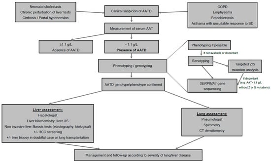 - All patients diagnosed with AATD should then be assessed for liver and lung involvement (Figure 1).