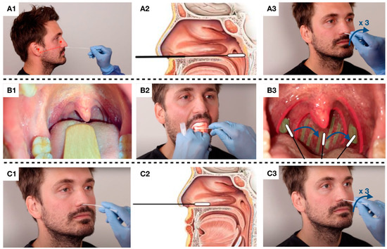 - Callesen, R.; Kiel, C.; Hovgaard, L.; Jakobsen, K.; Papesch, M.; von Buchwald, C.; Todsen, T. Optimal insertion depth for nasal mid-turbinate and nasopharyngeal swabs. Diagnostics 2021, 11, 1257. [Google Scholar] [CrossRef] [PubMed]
