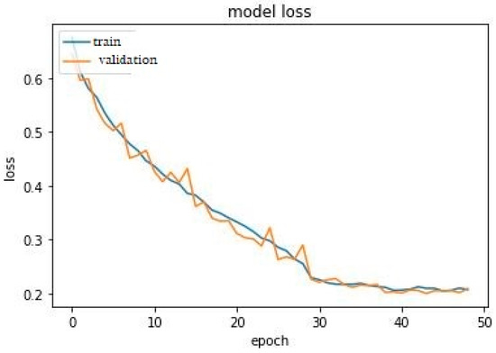 Learning curves are important metrics in DL to optimize internal parameters [35]. It is a plot of the model learning performance over time or experience. Reviewing the learning curves of a model during training can be used to diagnose problems with learning, such as an overfit or underfit model, and the training and validation datasets are suitably representative. Figure 4 and Figure 5 show the proposed model’s accuracy and loss learning curve. The proposed model generated a good fit from about the 30th epoch and sustained the excellent fit to about the 48th epoch for both the training and validation accuracy. Consequently, a good fit was generated from the 28th to the 48th epoch for both training and validation loss. The two learning curves indicate that our proposed model neither overfits nor underfit the data. Hence, the proposed model is capable of generalization on unseen test datasets.