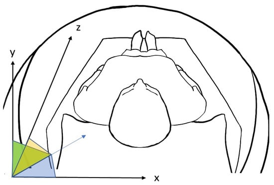Then, we developed a dedicated software using Anaconda [] vers. 2-2.4.0 to calculate principal spatial orientation parameters of the styloid process (see Figure 2). The major axis of styloid was defined as the polyline connecting the barycenter of each axial section previously segmented. To describe the orientation in three-dimensional space we used CT predefined axis. Particularly in axial view, x-axis is defined proceeding latero-laterally (from left to right); y-axis postero-anteriorly (from occipital bone to nose), z-axis cranio-caudally (from head to feet) (see Figure 3).