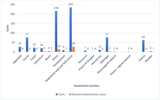 Comparison between cases of endometriosis and myxoid endometriosis according to location.