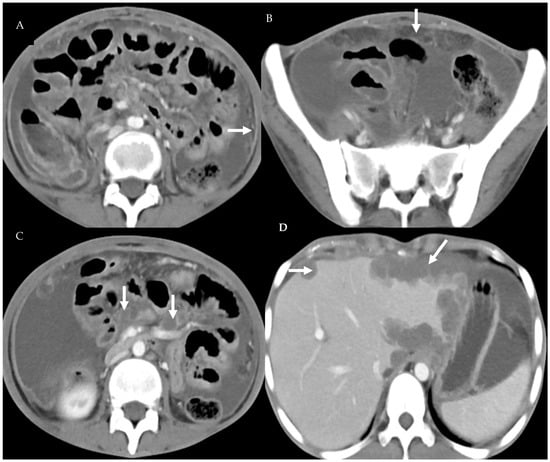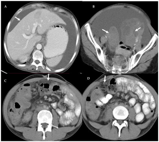 - Johnson, C.C.; Baldessarre, J.; Levison, M.E. Peritonitis: Update on pathophysiology, clinical manifestations, and management. Clin. Infect. Dis. 1997, 24, 1035–1047. [Google Scholar] [CrossRef] [PubMed]