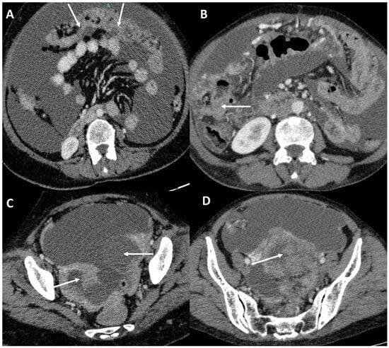 - Rodríguez, E.; Pombo, F. Peritoneal tuberculosis versus peritoneal carcinomatosis: Distinction based on CT findings. J. Comput. Assist. Tomogr. 1996, 20, 269–272. [Google Scholar] [CrossRef]