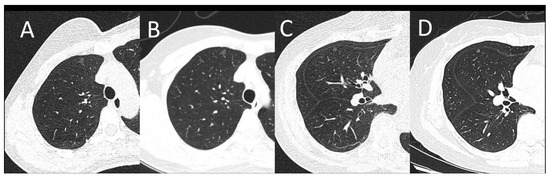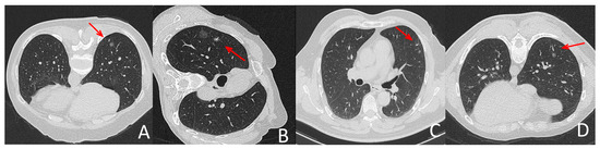In the current study, the hook wire was successfully placed with all lung nodules removed through VATS in 151 patients, and none of the procedures needed conversion to thoracotomy. Pneumothorax and hemorrhage are the most common complications associated with hook wire localization [3], along with other factors, such as the number of needle insertions and the duration of the procedure [29]. This study found no statistically significant differences between groups in terms of needle insertions and total puncture time, which is consistent with earlier research [1,9]. The overall frequency of intrapulmonary hemorrhage and pneumothorax did not differ significantly across all groups. All pneumothoraces observed in our study were classified as asymptomatic small pneumothorax [30,31], and none of them required further intervention before surgery. No serious complications such as hemoptysis, massive hemothorax or air embolisms were identified in either group. In light of these findings, it appears that radiation dose reduction does not increase the risk of complications associated with localization.
