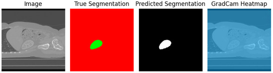 Our analysis explored two essential aspects: the Grad-CAM [39] XAI for tumor segmentation and the synergy between Grad-CAM and Attention-based heatmap methods. Grad-CAM XAI for tumor segmentation (Figure 8) is a more granular understanding of the tumor segmentation process. We harnessed Grad-CAM [39] to generate heatmaps highlighting the significant regions within kidney CT scans. These heatmaps reveal the specific areas that contributed to the model’s categorization decisions, offering valuable insights into tumor localization and segmentation. Figure 8 presents an illustrative depiction of this Grad-CAM-based XAI applied to kidney tumor segmentation.