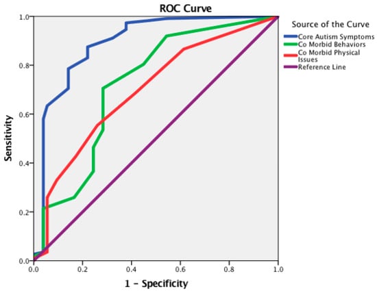 Receiver operating characteristics (ROC) curve for the three factors of APSI—between parents’ group of ASD children and parents’ group of TD children.
