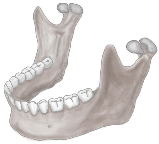 - Balciunas, B.A. Bifid mandibular condyle. J. Oral Maxillofac. Surg. Off. J. Am. Assoc. Oral Maxillofac. Surg. 1986, 44, 324–325. [Google Scholar] [CrossRef]
