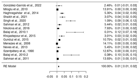 The data extracted from the meta-analysis were interpreted by calculating the prevalence of BMC variants using the JAMOVI software 2.4.8 version [14]. For the appropriate statistical model for the analysis of the data obtained, we used the DerSimonian–Laird model. Additionally, a random effects model was used because BMC prevalence data were heterogeneous. To calculate heterogeneity, we use the chi-square test (I2). For the chi-square test, the p-value proposed by the Cochrane Collaboration was considered significant when it was <0.10. The values of the I2 statistic were interpreted with a 95% confidence interval [CI] as follows: 0–40% might not be important, 30–60% might indicate moderate heterogeneity, 50–90% might represent substantial heterogeneity, and 75–100% could represent a significant amount of heterogeneity [15].