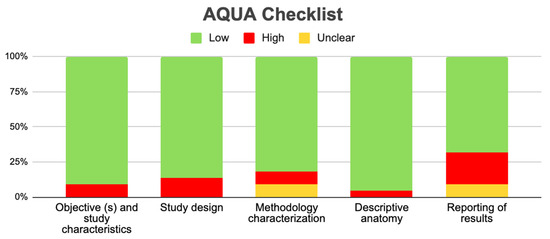 Quality assessment of the retrospective and prospective observational studies was performed using the methodological quality assurance for anatomical studies (AQUA) tool proposed by the International Evidence-Based Anatomy Working Group [13]. Two reviewers (JJV and PN) independently performed the data extraction and quality assessment. A third reviewer (KK) was involved if a consensus could not be reached. For case study bias, two authors (JS and MR) separately assessed the risk of bias. To bias the case studies, the Joanna Briggs Institute assessment tool for case reports was used [14].This questionnaire has eight items, with answers such as “yes”, “unclear”, “no”, or “not applicable”, with the following criteria to be evaluated: (1) low risk of bias: more than 70% score of “yes”, (2) moderate risk of bias: 50–69% score of “yes”, and (3) high risk of bias: less than 49% score of “yes”.