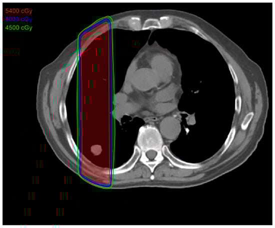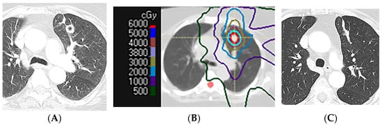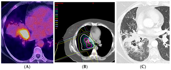 Treatment options for NSCLC include surgery, chemotherapy, immunotherapy, and radiation therapy (RT). While treatment regimens are tailored to individual cases, for early-stage NSCLC, surgery remains the gold standard, including newer minimally invasive techniques such as video-assisted thoracic surgery (VATS) and robot-assisted thoracic surgery (RATS) [4]. Surgical treatment can even be performed in patients with some degree of chronic pulmonary disease [5]. However, for patients who are medically inoperable (such as those with more advanced chronic pulmonary disease) or who decline surgical treatment, RT has emerged as a highly effective alternative for the treatment of early-stage NSCLC [1,6,7]. Additionally, in advanced-stage inoperable disease, RT may be administered in conjunction with chemotherapy or immunotherapy, as well as for palliation [8].