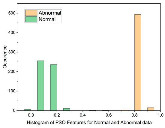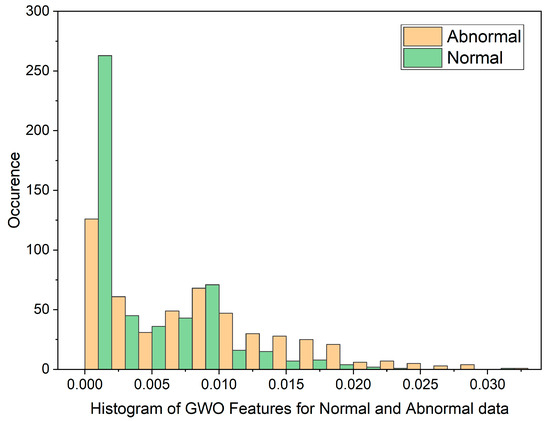 The histogram plot in Figure 3 illustrates the distribution of PSO feature data for normal and malignant cancer cases. The histogram illustrates PSO features characterized by outliers, substantial gaps, downward trends, and a non-Gaussian distribution. From Table 1, In the PSO-based extraction technique, the Canonical Correlation Coefficient (CCA) value is significantly low at 0.12309, suggesting a non-linear relationship between normal and malignant cases. Figure 4 showcases the histogram plot for GWO feature distribution, indicating skewed Poisson distributed data, and a non-linear nature.