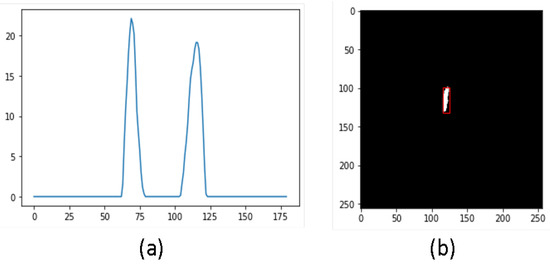 (a) Mean mask values per slice and (b) mask with maximum mean.