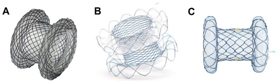Lumen-apposing metal stents (LAMS) that can be used for EUS-guided gastroenterostomy: (A) the AXIOS™ stent (courtesy of Boston Scientific Corp., Marlborough, MA, USA); (B) the Spaxus™ stent (courtesy of Taewoong Medical Co., Ltd., Gimpo, Republic of Korea); (C) the Z-EUS IT™ stent (courtesy of M.I.Tech Co., Ltd., Pyongtaek, Republic of Korea) (reproduced from [12,13] with permission).