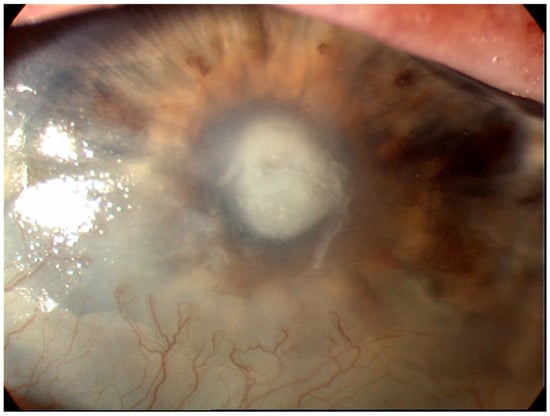 - Oliveira, M.A.; Rosa, A.; Soares, M.; Gil, J.; Costa, E.; Quadrado, M.J.; Murta, J. Anterior segment optical coherence tomography in the early management of microbial keratitis: A cross-sectional study. Acta Med. Port. 2020, 33, 318–325. [Google Scholar] [CrossRef]