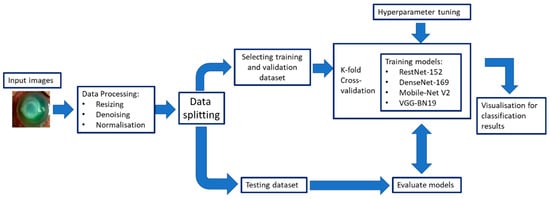 - Kuo, M.-T.; Hsu, B.W.-Y.; Lin, Y.-S.; Fang, P.-C.; Yu, H.-J.; Chen, A.; Yu, M.-S.; Tseng, V.S. Comparisons of deep learning algorithms for diagnosing bacterial keratitis via external eye photographs. Sci. Rep. 2021, 11, 24227. [Google Scholar] [CrossRef]