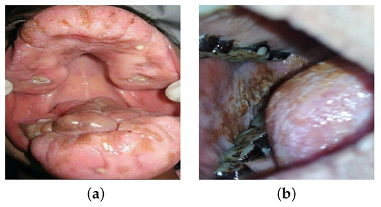 - McKinney, R.; Olmo, H. Physical and chemical lesions of the oral mucosa. In StatPearls [Internet]; StatPearls Publishing: Treasure Island, FL, USA, 2023. [Google Scholar]