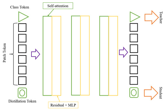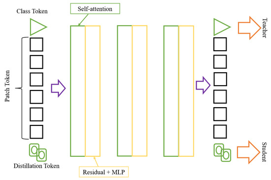 Image transformation techniques are used to improve the appearance of digital images. The improving techniques include improving the clarity, sharpness, contrast, brightness, and color. DeIT is a technique used to improve the quality of digital images automatically. The improving technique is performed using a deep learning algorithm to learn the features of a digital image and then apply appropriate transformations to improve the image. This technique can enhance various medical, industrial, artistic, and recreational images. DeIT can also automatically enhance the quality of images taken with mobile devices, making them look better without manual intervention [34]. The real architecture of this model is shown in Figure 6, and our modified architecture is shown in Figure 7. Table 4 shows the hyper-tuning for the model.